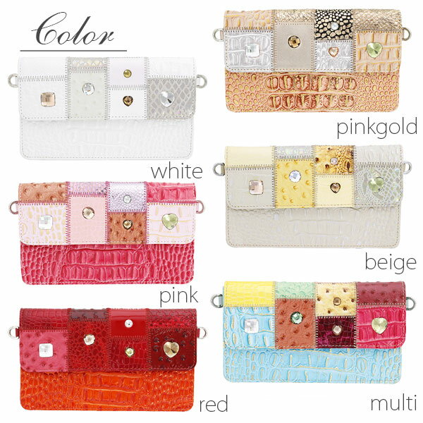 カラー:ピンクゴールド・ホワイト・ベージュ・ピンク・レッド・マルチ大きさ: 約10.5×18.0×2.0cm 素材:素材:牛革、ビニール、ガラス、亜鉛合金、ポリエステル(裏地) ※クリアポケット収納時、iPhone7以降の感圧式ホームボタンや指紋認証はご使用いただけません。