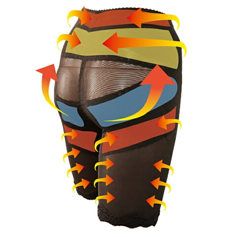 全体的を単に引き締めるのではなく、ウエスト部分、ヒップ部分、太もも部分にそれぞれ異なった着圧生地を使用。