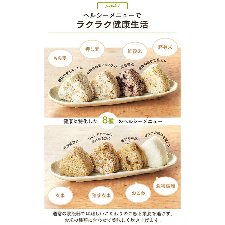 通常の炊飯器では難しいこだわりのご飯も栄養を逃さず、お米の種類に合わせて美味しく炊き上げます。