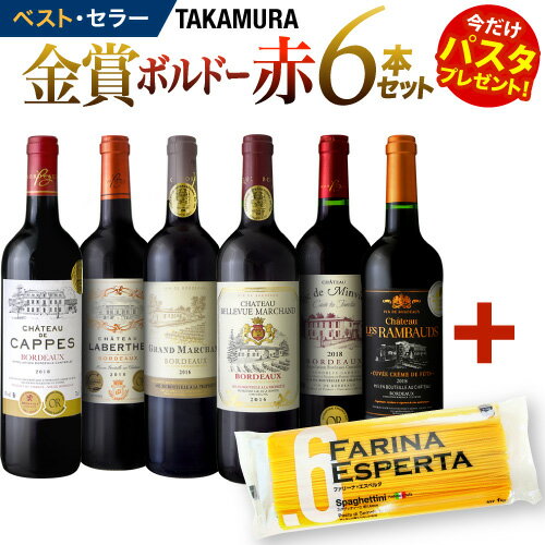 ワインセット 赤 送料無料 第154弾 ★パスタ付★ タカムラ スタッフ厳選!!自慢の金賞ボルドー6本 赤ワイン セット【パスタ賞味期限:2023年5月9日】(追加5本同梱可)(代引き クール便別途) | [A] [T]