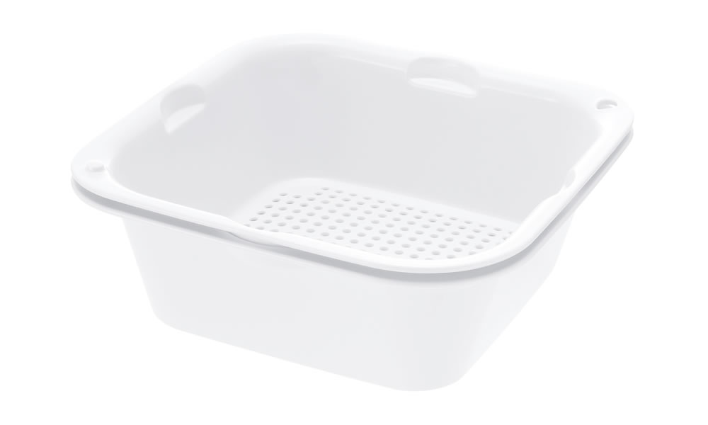調理スペースがひろびろ使える!【Cheriシリーズ】食材を入れたまま積み上げられる、角型のざるとバットのセット。