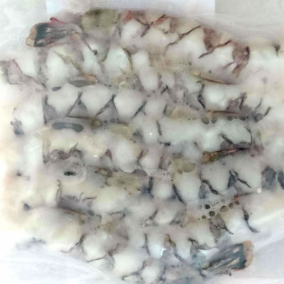 鮮度の良いブラックタイガー海老を 尾付きむきにし、背わたをとり、腹切り、伸ばし、尾扇のしごき、剣取り処理をしてあります。